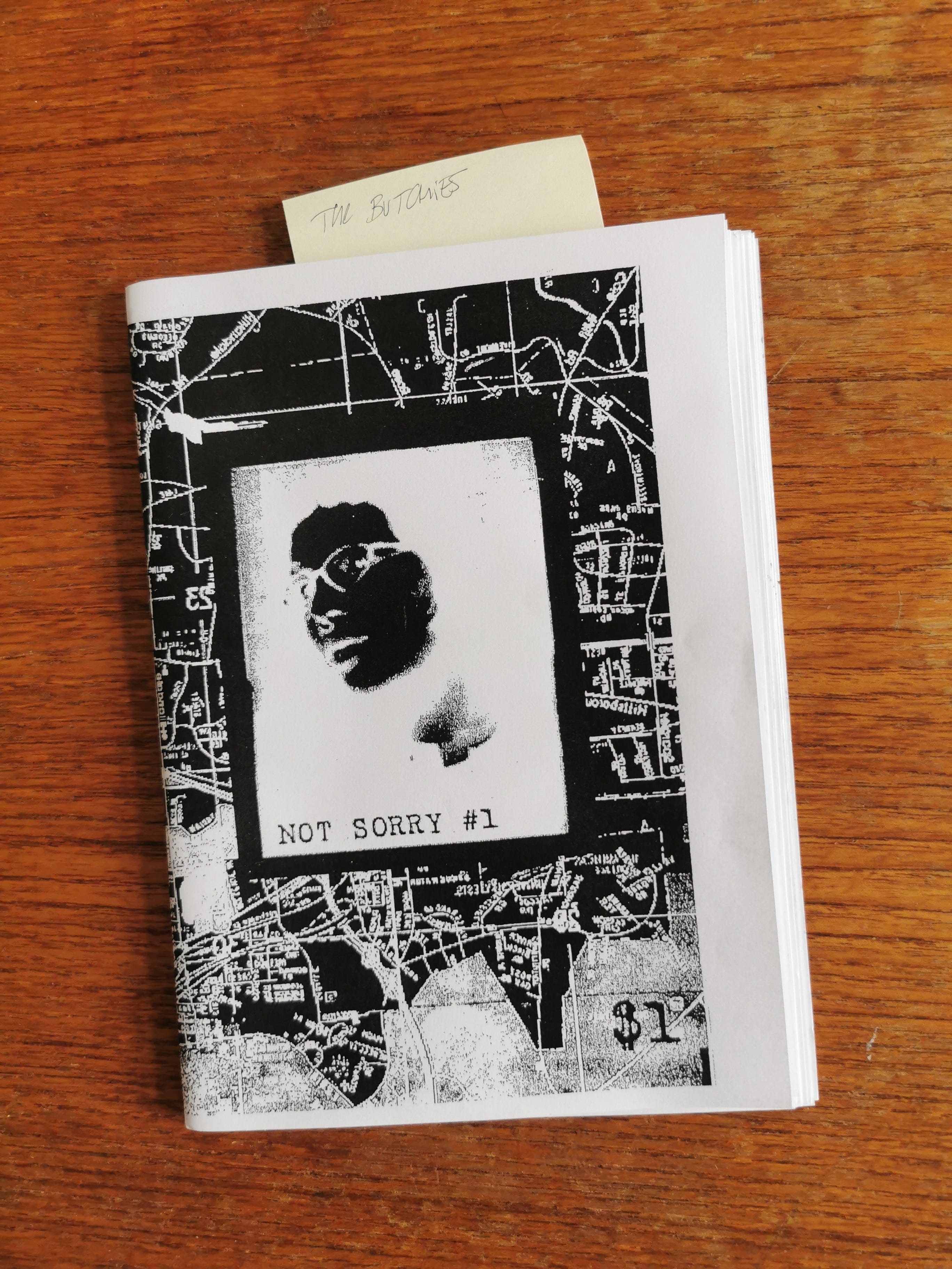 Another zine I kept coming back to while working on this show was Not Sorry #1, published by Jenny in 2006. It takes a sharp, personal look at the Riot Grrrl movement—celebrating it, while also calling out its blind spots. Jenny writes about fatphobia, the Michigan Womyn’s Music Festival’s exclusionary policies, and the ways parts of the scene lacked intersectionality. There’s this line I underlined immediately: